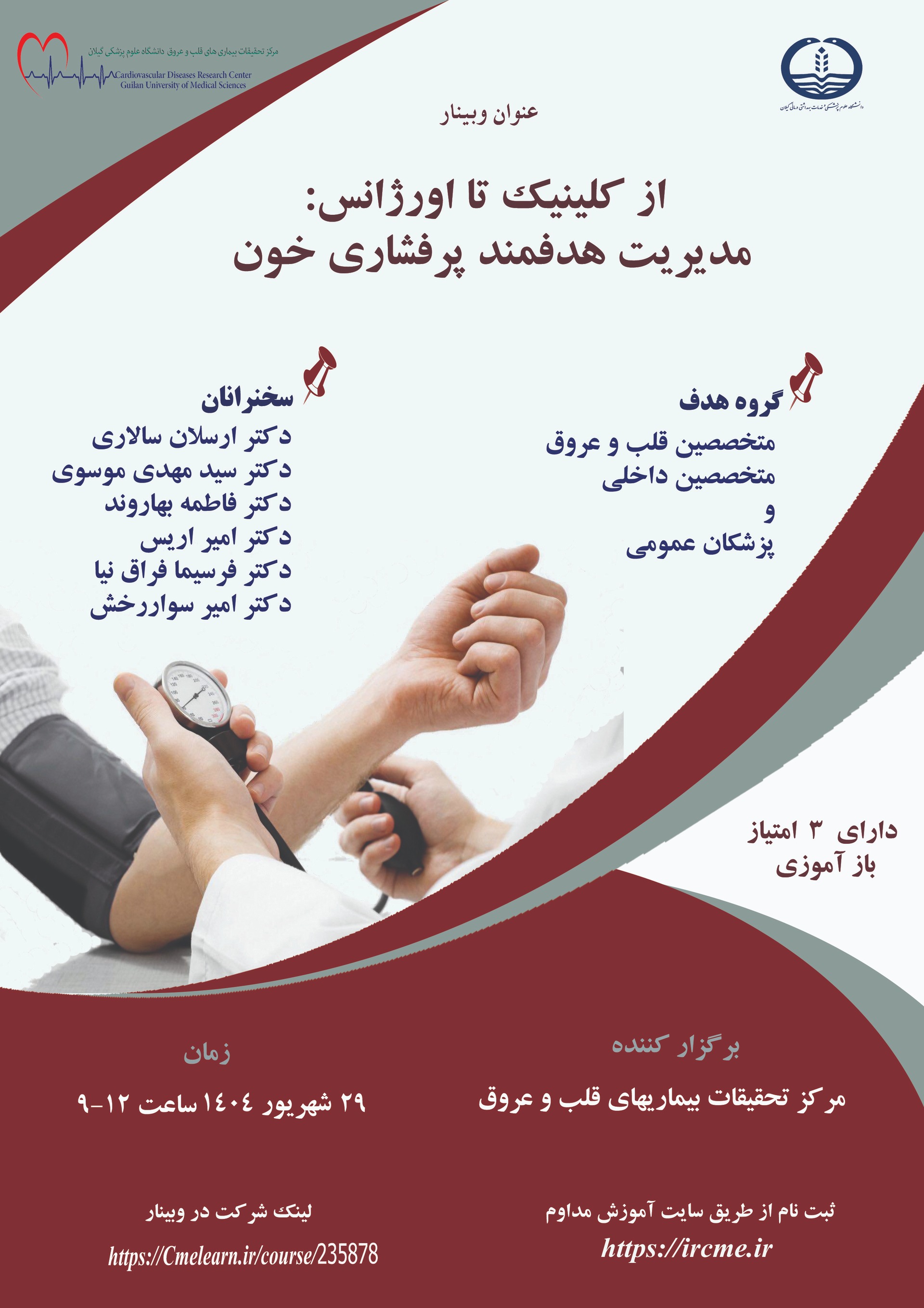 وبینار از کلینیک تا اورژانس:مدیریت هدفمند پرفشاری خون